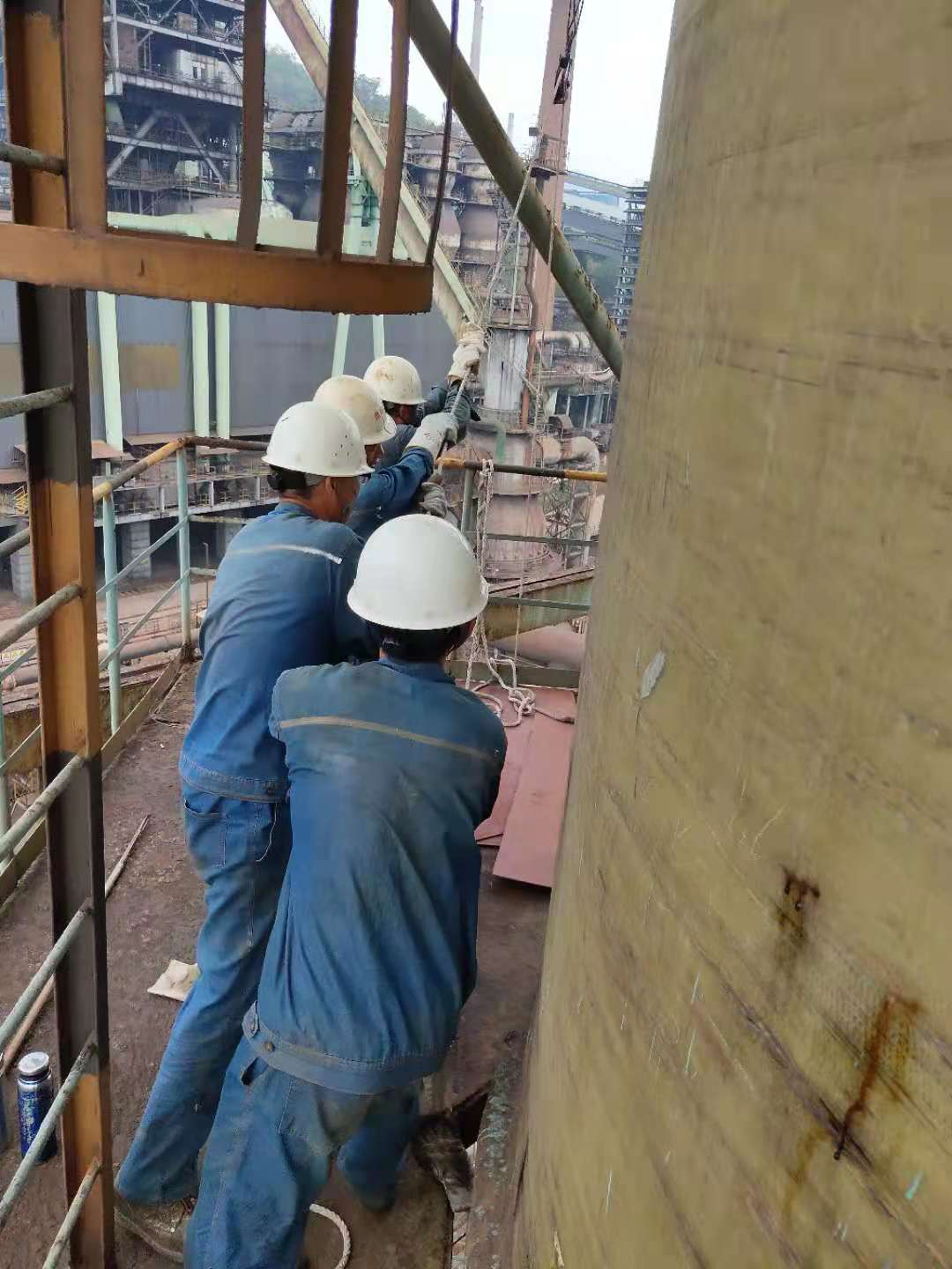 6月23日班前會檢修班長劉武對六燒出口在線監(jiān)測平臺鋼板更換工作做了詳細(xì)的人員部署和安全注意事項講解。8:30檢修組人員到達(dá)現(xiàn)場,吸收塔周邊拉好警戒線,其中3人到達(dá)除霧器平臺對地面人員進(jìn)行指揮,地面人員將鋼板掛在繩子的一端,另一端3人托攥繩子,通過定滑輪緩慢的將鋼板運輸至除霧器平臺。采用相同的辦法,將運輸至除霧器的鋼板又轉(zhuǎn)運至在線監(jiān)測平臺。大家通過3小時的齊心協(xié)力,將30平方鋼板全部轉(zhuǎn)運至出口在線監(jiān)測平臺。隨后檢修人員利用4小時,安全、高效的將所有腐蝕的平臺更換完畢,完成了本次安全隱患消除項目。
