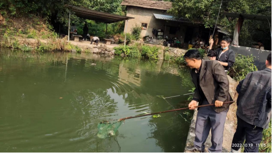 上午8時,大家按約定前往新莊高速路口附近的魚塘釣魚,在路途中大家紛紛自詡為釣魚能手,大有“不服就干”的架勢,路途中大家一片歡聲笑語。到達目的地拿了魚料后大家都靜下心來釣魚,互相比較誰先上魚、誰上的魚大。