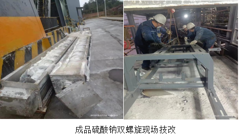 為提升硫酸鈉的品質(zhì),減少系統(tǒng)非計劃停機等風險,威遠藍鼎生產(chǎn)部在運維部、供應(yīng)部大力支持下決定將兩條螺旋技改成輸送皮帶,2023年1月14日,蒸發(fā)濃縮停機檢修,生產(chǎn)部長黃安軍、楊平、宋雨鵬協(xié)同檢修班長和生產(chǎn)技術(shù)員張衛(wèi)健,集中威遠藍鼎檢修骨干對硫酸鈉兩條螺旋開始技改工作,18:30硝螺旋改輸送皮帶技改完成進行試車,1月15日凌晨3:00帶料試車正常,經(jīng)過1個月使用觀察,本次技改較螺旋故障率更低,物料輸送更松散、均勻,也大大改善了干燥后硫酸鈉積塊等問題,同時也得到了川威集團銷售的認可,體現(xiàn)了公司敢于創(chuàng)新的精神。