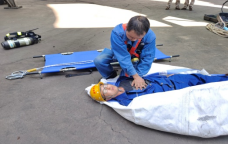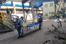 5.31日上午10時生產部接到有限空間煤氣中毒事故報告,在燒結一期濕法由于煙道檢修,有一名工人煤氣中毒后暈倒。生產部馬上啟動應急救援,10:10分兩名救援隊員攜帶擔架、急救藥箱、空氣呼吸機等器材進入演練場地,經過現(xiàn)場查看,受傷人員輕度昏迷,救援隊員將受傷人員抬在擔架上,轉移至安全場所進行人工呼吸,10:20受傷人員恢復意識。