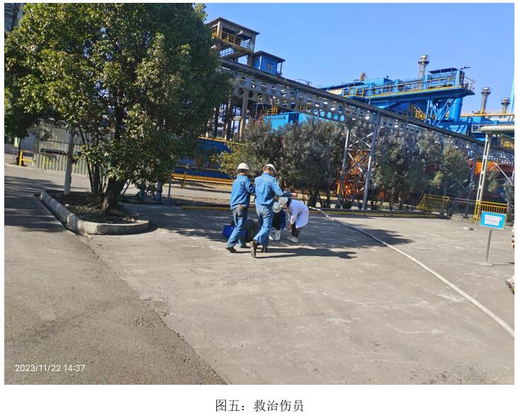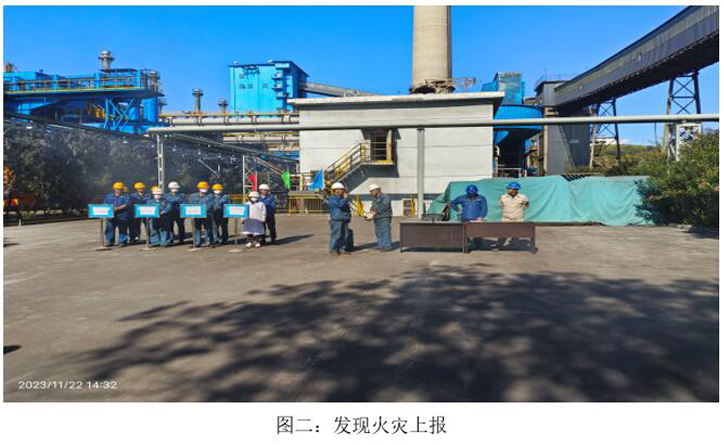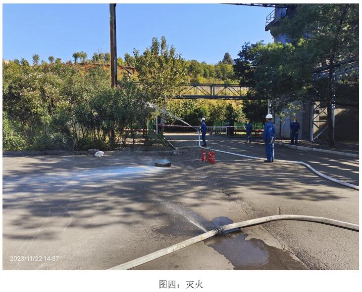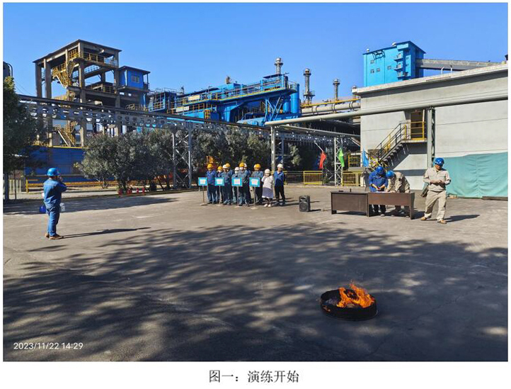 本次演練模擬2023年11月22日10:00分,焦化脫硫脫硝巡檢員發(fā)現(xiàn)焦化6號(hào)門(mén)因其他公司職工在外抽煙后,煙頭未熄滅直接丟入綠化帶,將綠化帶內(nèi)干雜草點(diǎn)燃,發(fā)生火災(zāi),后藍(lán)鼎公司現(xiàn)場(chǎng)巡檢員立即上報(bào)并按領(lǐng)導(dǎo)指示警戒、滅火、救治傷員、現(xiàn)場(chǎng)清理、結(jié)果匯報(bào)等措施消除火災(zāi)。