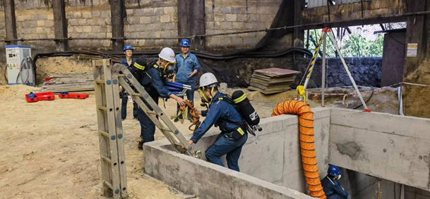 為進一步加強職工的安全環(huán)保意識,提高在有限空間作業(yè)中突發(fā)事故的應(yīng)急處置能力,掌握科學(xué)的事故處置程序,并最大限度地減少事故造成的人員傷亡,同時防止因盲目施救而引發(fā)事故擴大,攀藍鼎生產(chǎn)部于2024年3月25日組織了一場《有限空間作業(yè)中毒處置》應(yīng)急預(yù)案演練。