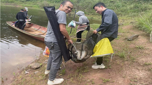 到達(dá)目的后,小伙伴們迅速開始準(zhǔn)備工作,一字排開、上魚餌、調(diào)魚漂、甩魚竿,快速完成一連串動作。10:21開始上魚,小伙伴們將一條條魚收入網(wǎng)中,盡情享受垂釣帶來的樂趣;16:00結(jié)束釣魚活動,釣鰱鳙大頭魚約21斤,晚上伙伴們在宿舍開展釣魚烹飪,以美食結(jié)束充實(shí)的一天。