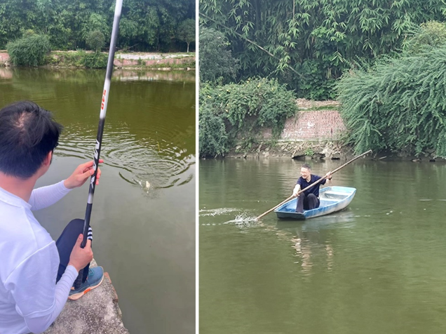 釣上魚的收獲瞬間 & 同事打撈被魚拖下水的釣竿