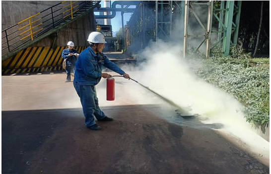 本次演練模擬場景為球團(tuán)綠化帶起火, 14:00演練正式開始。西昌藍(lán)鼎巡檢員在現(xiàn)場檢查時發(fā)現(xiàn)球團(tuán)綠化帶出現(xiàn)火情,迅速上報當(dāng)班班長。班長以最快速度將情況上報生產(chǎn)副部長,生產(chǎn)副部長按照規(guī)定的匯報機(jī)制,迅速將信息傳達(dá)至球團(tuán)主任。得到搶險指示后,西昌藍(lán)鼎生產(chǎn)部立即行動,有條不紊地組織人員疏散,對現(xiàn)場進(jìn)行了嚴(yán)格的警戒隔離,確保周邊人員的安全。同時,各部門迅速組織力量,憑借嫻熟的技能和豐富的經(jīng)驗(yàn),將火情進(jìn)行了有效撲滅。