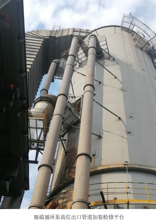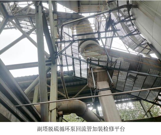 西昌藍(lán)鼎在7月初順利完成了球團(tuán)脫硫循環(huán)泵管道及回流管檢修平臺的改造工程。本次改造工程歷時兩個月,涉及的改造內(nèi)容有6臺脫硫循環(huán)泵管道最高位出口處以和副塔脫硫循環(huán)泵回流管全管道的檢修平臺加裝工作。