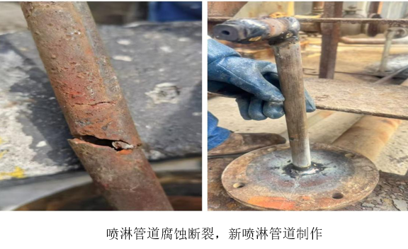 接到隱患報(bào)告后,生產(chǎn)部迅速響應(yīng),快速統(tǒng)籌部署應(yīng)急處置工作,明確處置流程和責(zé)任分工,確保隱患處置高效推進(jìn)并取得實(shí)效。施工過(guò)程中,生產(chǎn)部副部長(zhǎng)楊平嚴(yán)格把控質(zhì)量關(guān),結(jié)合噴淋管道的腐蝕誘因,選用耐腐蝕性更強(qiáng)的材料,優(yōu)化管道焊接工藝,著重強(qiáng)化接口處的密封處理,有效防范因氯離子侵蝕、介質(zhì)沖刷等問(wèn)題導(dǎo)致的二次腐蝕。檢修人員王成東嚴(yán)格按照安全操作規(guī)程開(kāi)展管道拆除、制作、安裝、調(diào)試等各項(xiàng)工作,全程嚴(yán)格把控檢修細(xì)節(jié),杜絕噴淋焊接過(guò)程中出現(xiàn)新的安全隱患,確保檢修工作安全、規(guī)范、高效進(jìn)行。